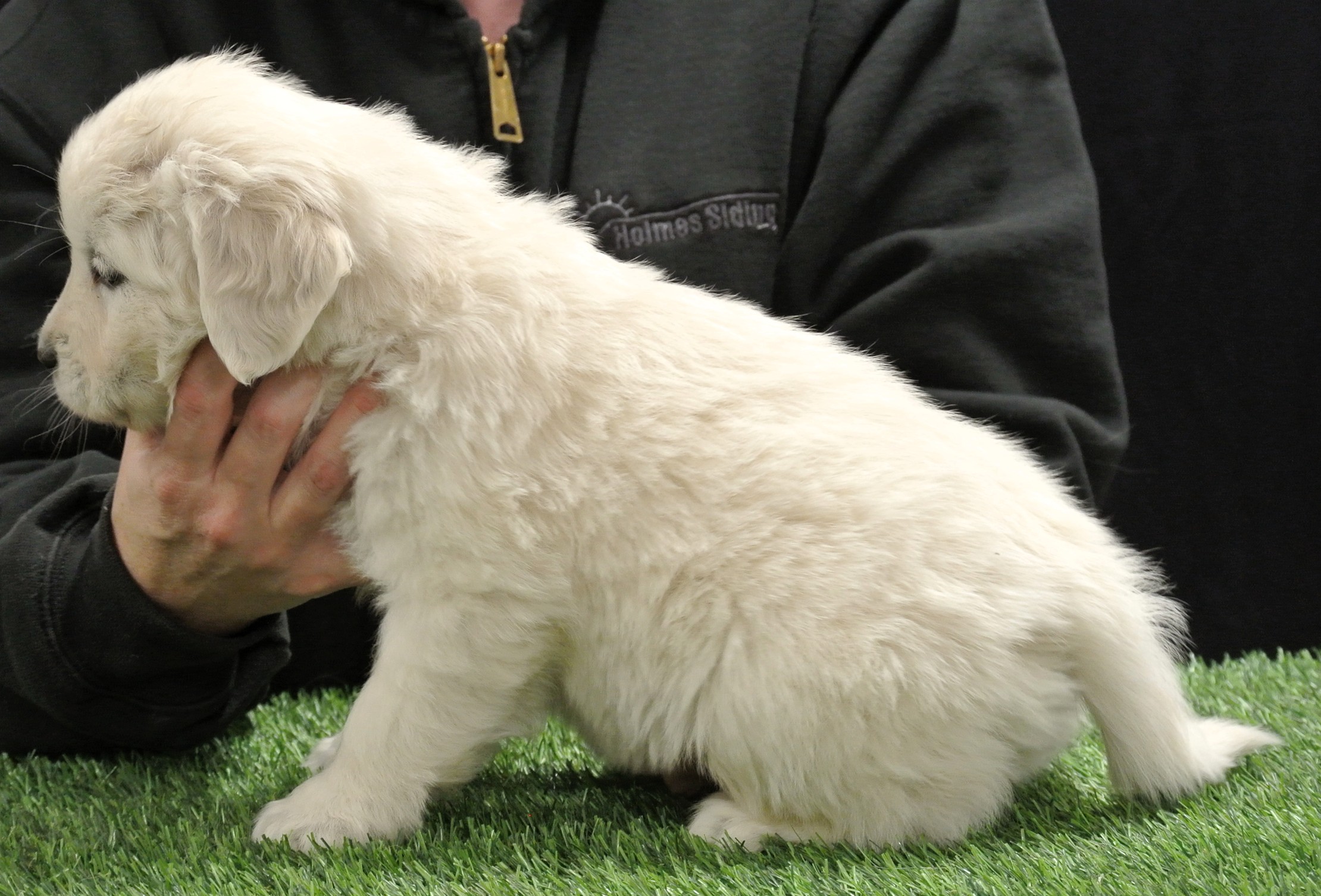Chino is imported from Ukraine where he was a junior and adult champion. He is a handsome, sweet boy with a very gentle temperament and my 4-year-old daughter adores him. Chino has excellent conformation; a solid, muscular build and a lot of bone. He has a gorgeous, blocky head along with a square muzzle. He also has a thick coat which is very light in color. He is clear genetically and has passed all hip, elbow, heart, and eye exams. He is a proven sire with medium to large litters. He is available to approved females. Semen can be shipped to you or your veterinarian. Contact us for more info.